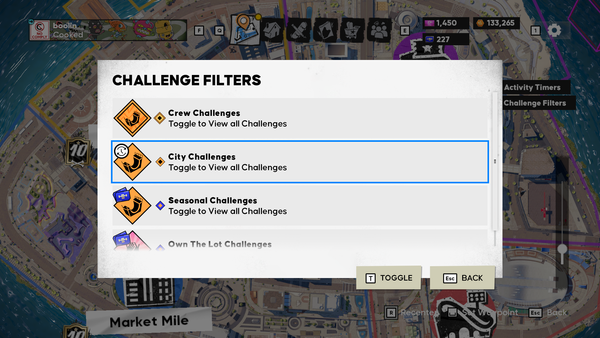 This concept explores a lightweight filter that allows players to control which challenge icons appear on the map. It uses existing UI patterns currently present in-game.
