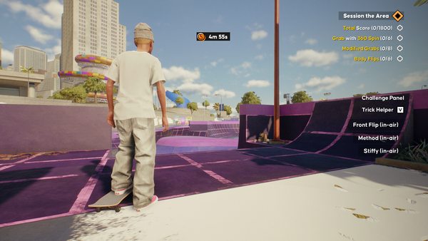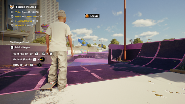In Goofy, the UI sits in a clean position that doesn't interfere with the skater or default camera. It feels natural and unobtrusive.