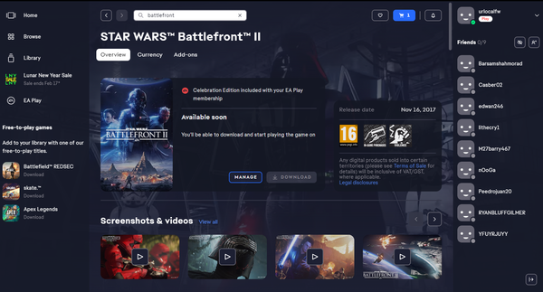 so I am subscribed to Xbox game pass ultimate, I'm on pc and I'm trying to download star wars battlefront 2, but it doesn't let me, when I open the EA app it only says available soon and under "you'll be able to download and play the game on" and it doesn't even say the date its been an issue for 3 months and my accounts are linked correctly because I can download other games like the battlefront 1 but not the 2nd one the download button is just greyed out and even on the Xbox app I cant download the game, I was hoping