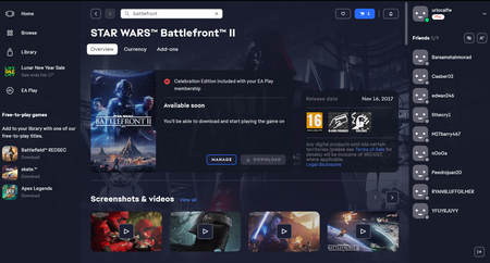 so I am subscribed to Xbox game pass ultimate, I'm on pc and I'm trying to download star wars battlefront 2, but it doesn't let me, when I open the EA app it only says available soon and under "you'l...