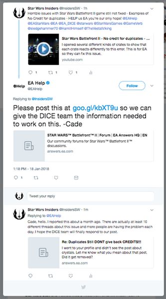 I also Tweeted this at EA, StarWars, and everyone I could think of to get them to notice us.