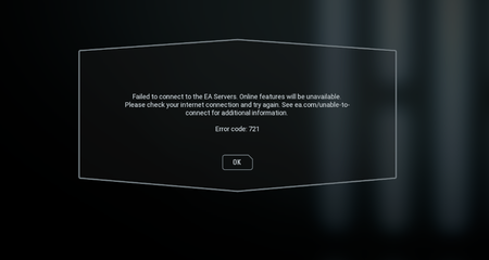 Has anyone got the error code 721 recently on PC?  Because it's seriously annoying and I cannot connect myself to the EA servers for Star Wars Battlefront II. I want to add that my internet is good...