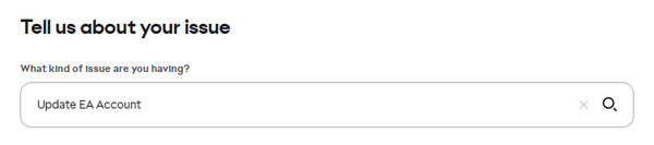 On the next page, you will see a form to fill out. On this form, there will be a question "What kind of issue are you having?", select "Update EA account".