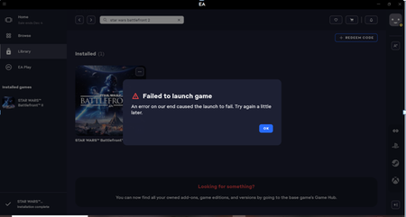I bought Star Wars Battlefront 2. I downloaded the game and when i press the Start button it appears the following screen "Failed to launch game. An error on our account caused the launch to fai...