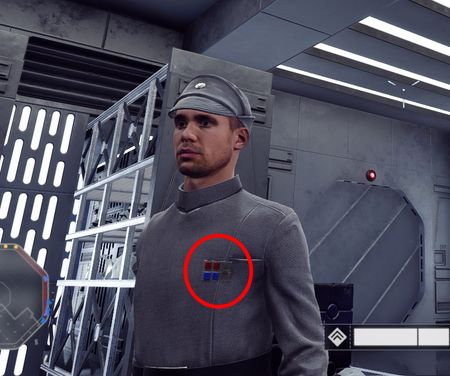 A pitty that this isnt fixed already. I belive this should be a Lieutenant rank with one code cylinder on left side or commander with two cylinders on both sides. There is also a problem with armor officer. While his insignias are good... he should has one cylinder on left side if he is a Lieutenant... You should pay also more attention to code cylinders.