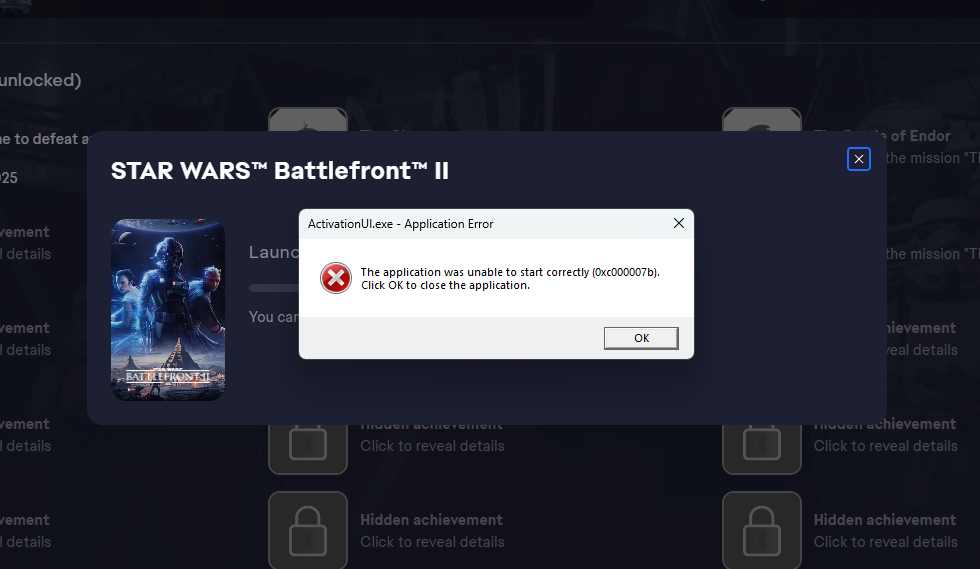 When I start the game through EA or even Epic I keep getting the same 0xc000007b error code. I have already reinstalled all my Visual C++, tried running it on both my of drives, and verified the files countless times. I have updated drivers as well and I was able to play last May so none of this makes any sense.