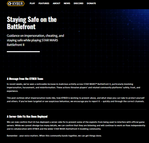 TriplenatorSeasoned Veteran9 months agoKyber responded with a fix in collab with EA Staying Safe in STAR WARS Battlefront II Show More
