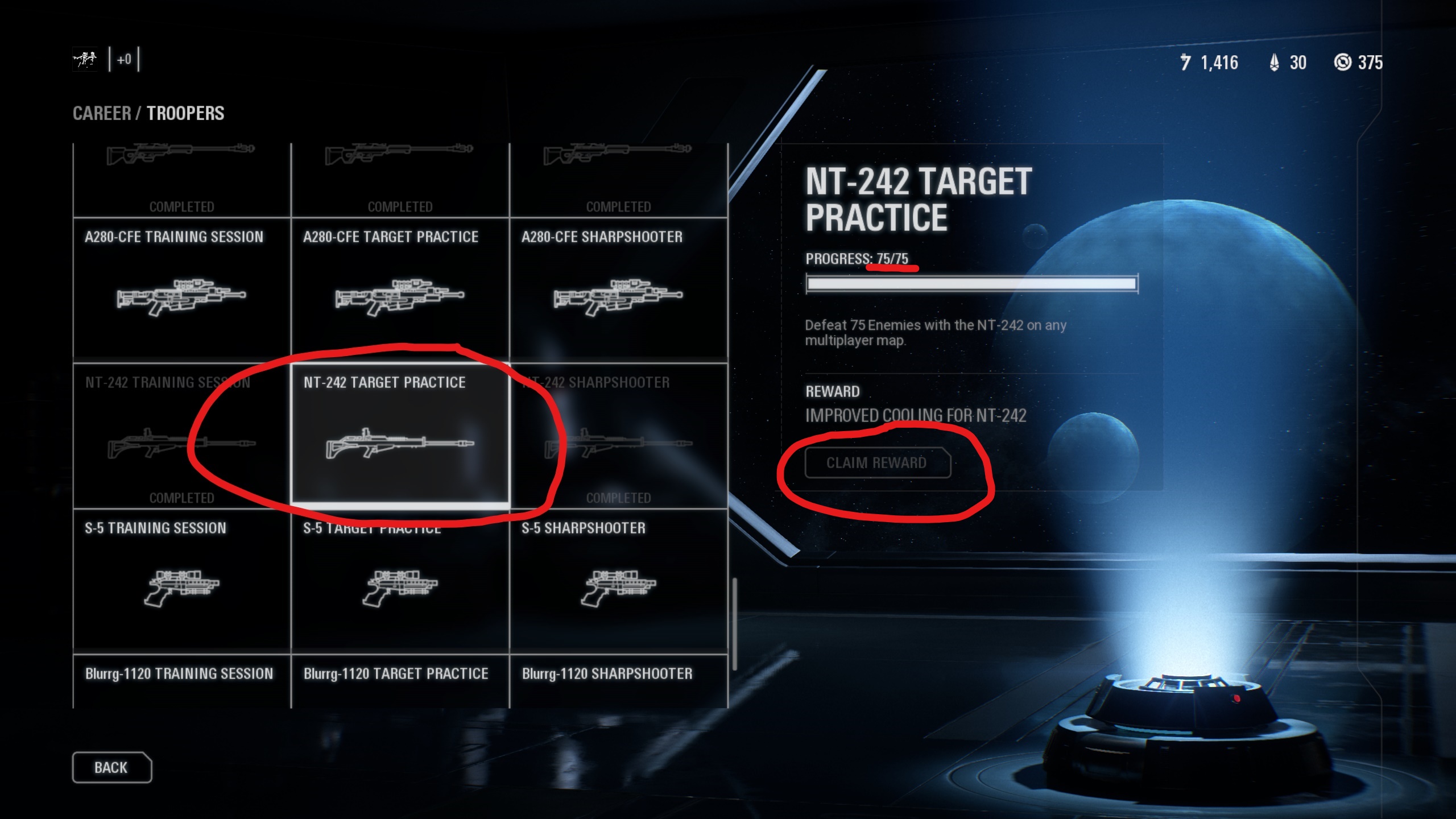 Rapid fire on SE-44C sharpshooter. It shows just like everyone else in this thread that its done. Its greyed out. But I can't claim it and obviously I don't have the mod.