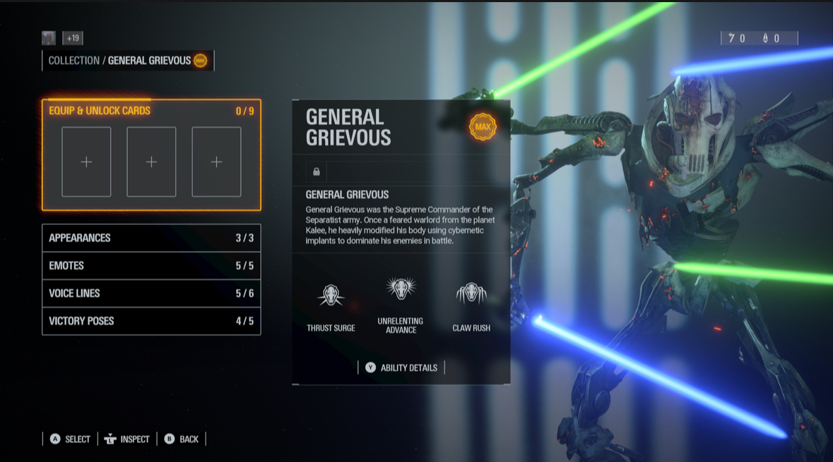- Are you missing specific progress or has your account reset? All star cards blocked, also Solo’s movie Falcon, DLC heroes as Kenobi, Anakin, Grivous and Dooku and doc skins for all heroes and villains. All my progression is reset only my levels are intact.