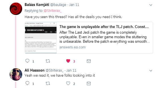 After The Last Jedi patch the game is completely unplayable. Even in smaller game modes the stuttering is unbearable. Before the patch everything was smooth, apart from the constant serverside rubberbanding, and laggs of course. Now everything stutters, the menu, the lootboxes, the SP cutscenes, everything...