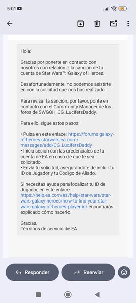 Información de bloqueos, vetos y suspensiones de Cuentas EA