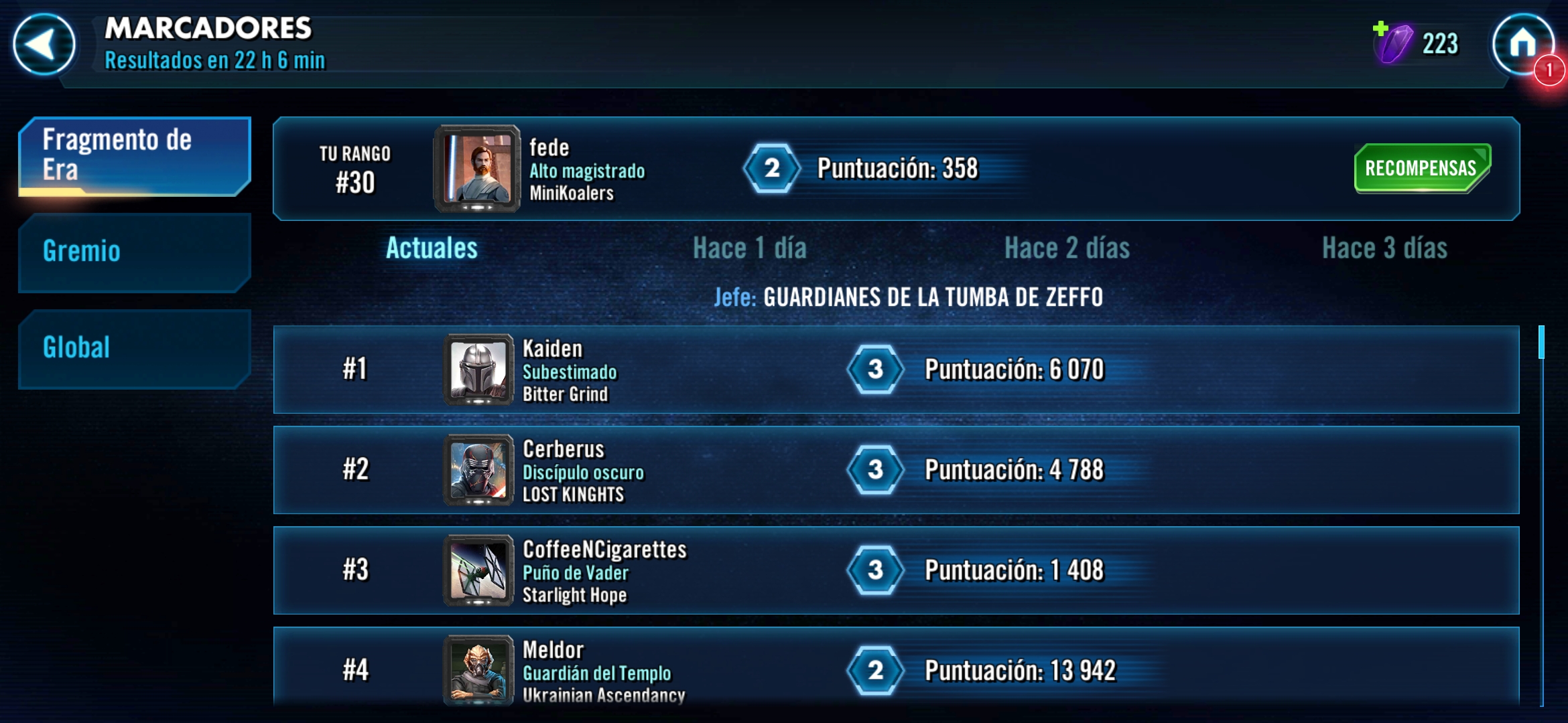 - Hace como 3 o 4 días que no recibo las monedas del ranking a estas alturas debería tener mas de 1560(recompensas de rankings 1400 y por subir a luke al nivel 16 unas 160 mas, más lo que corresponda por el evento de luke en el primer intento) pero tengo como 1140 aprox
