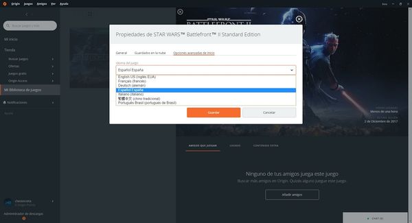 Me acaban de regalar STAR WARS™ Battlefront™ II Standard Edition ! El mismisimo Sebastian Llapur (Darth Vader) actor de doblaje y la verdad me gustaría poder disfrutar del juego en español latino, y no se como cambiar esa configuración! desde ya muchas gracias amigos! Adjunto una captura! Abrazos!