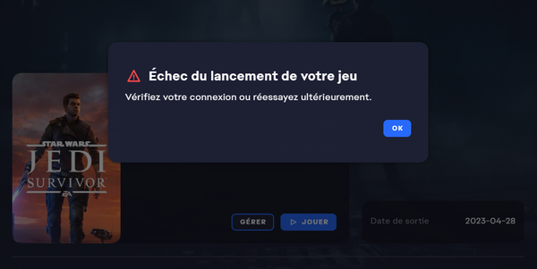 Perso, et pour rappel, je lance EA app, ensuite Jedi survivor, ensuite lancement du jeu qui mouline, puis tout disparait durant quelques secondes, et de nouveau la fenêtre EA de lancement du jeu réapparait ....