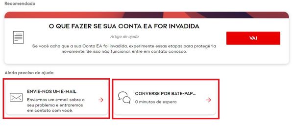 Se você escolher Envie-nos um e-mail, poderá receber uma resposta de e.ea.com. Esta é uma conta de e-mail oficial nossa, e recomendamos adicioná-la à lista de contatos. Dessa forma, ele não irá diretamente para a sua pasta de spam/lixo eletrônico.