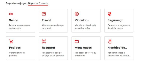 - Na página inicial da Ajuda da EA, selecione Suporte à conta.