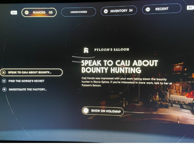 - I completed the mission in chapter three with Caij cutscene, I also had the pop up explaining how bounty system works. Nothing stranged happened, i didn't die during the fight and I scanned the bounty hunter. However, when I tried to open the menu the bounty panel was still "undiscovered".