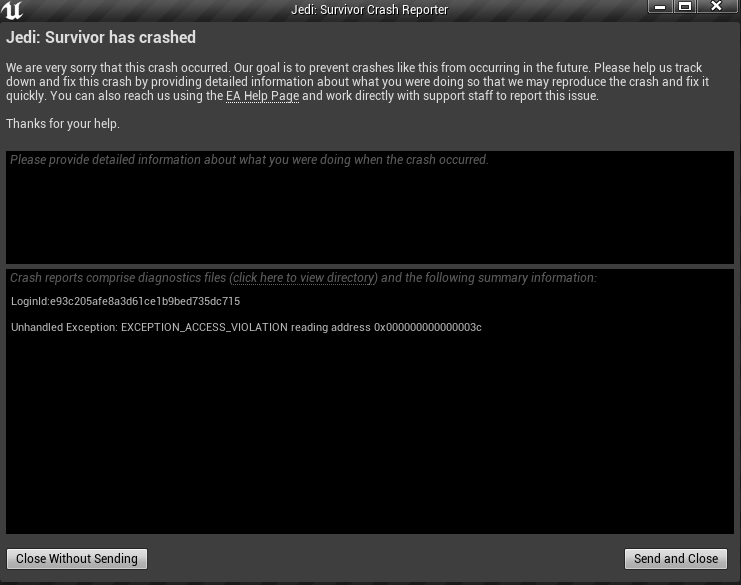 Star Wars Jedi: Survivor has never launched on my account. Not once. Every single launch attempt crashes instantly in Activation64.dll — EA's own DRM authentication module — at address 0x3c. The game never reaches a title screen, never loads a shader, never touches my GPU. It dies during EA's own authentication handshake before the game engine even initializes.