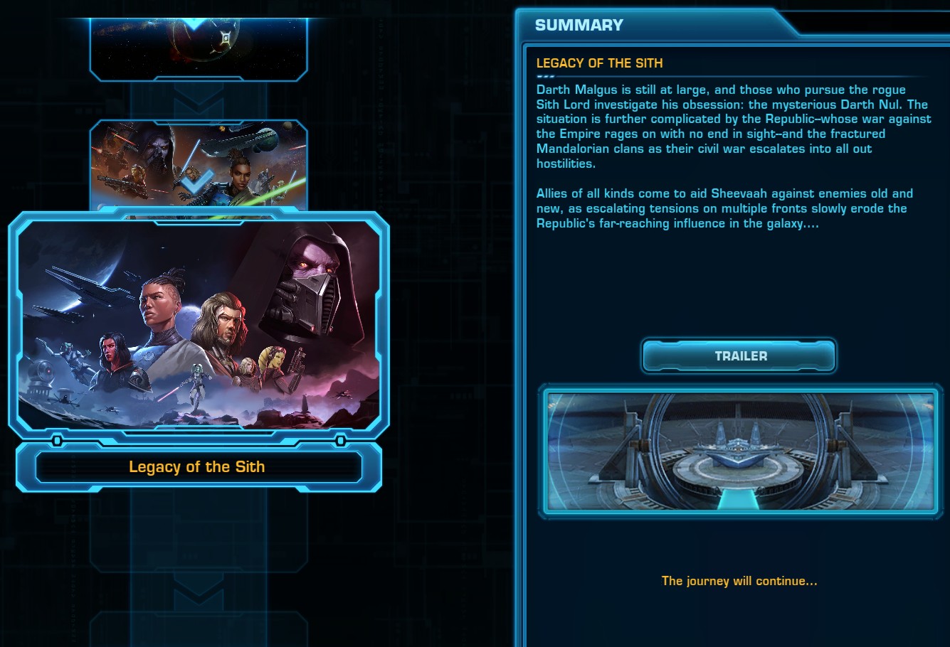 Recently came back to the game after a 10 or so year hiatis. Subscribed, burned through Onslaught, toon is level 80. Expected to have Legacy of the Sith popup to start and it hasn't all previous expansions finished, check ERAS and Ship mission terminal, nothing. Eras gives the option for the trailer but not to launch the mission. Opened a support ticket and they said check ERAS.. lol Can anyone Help