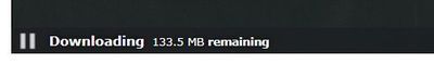 Upon logging into the client, the progress bar starts off saying "Downloading 133.5 MB remaining" with a fairly strong download speed, just as OP also explained (somewhere around 8MB/sec), then it immediately drops off to nothing within seconds, seemingly stopping altogether. As I type this, my progress bar looks like this.
