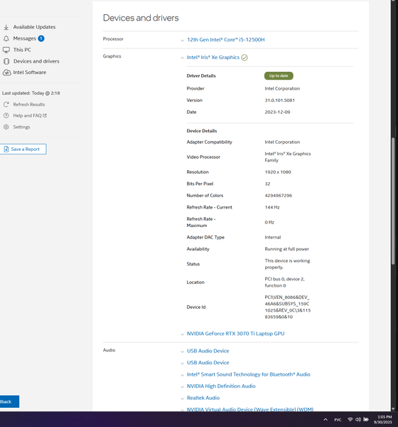 and whilst the nvidia driver is up to date, the Intel driver is from 2023 , intel iris is known to crash swtor on older drivers