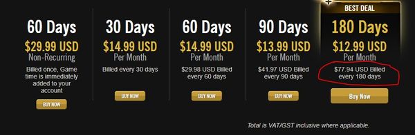 I was scammed by the main swtor website where it says 180 days of subscription time for $12.99 USD ( and then a recurring $77.94 every 6 months ). I was charged the full 77.94 instead of the offered 12.99 that the site is stating. I immediately quit the game and am awaiting a reply because I DO NOT want to spend nearly $80 at this current time. I do not want to do a chargeback with my bank as that would cause many more issues I'm sure we want to avoid. I would like to either receive a full refund, or have the 12.99 deal honored and a refund of the extra $ beyond that.
