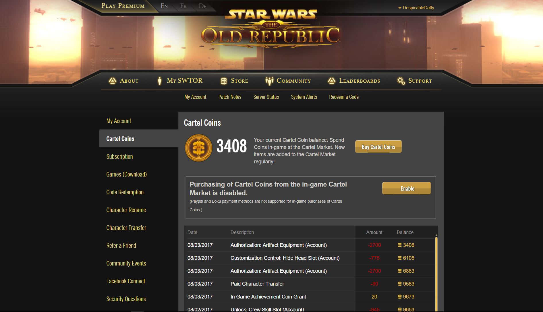 I purchased Customization Control: hide Head slot (account) and Authorization: Artifact Equipment (account). After I clicked on the two claimed items in the unclaimed spot of the cartel market I real...