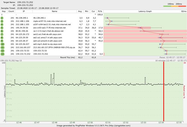- @proxos666 As I know, things are even worse with USA servers. Sometimes I can't reach it at all. And one more interesting fact - my friend lives near me (~5km), he has the same router and the same ISP and everything works as expected.