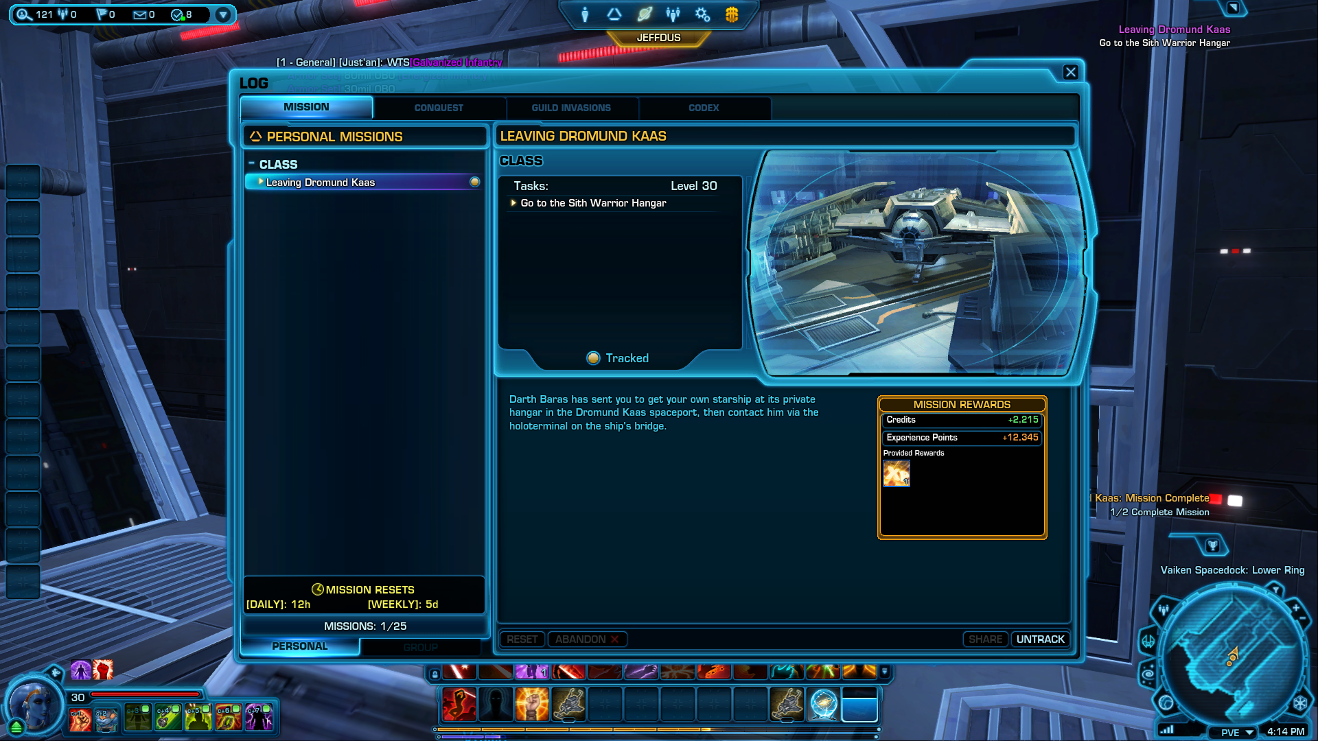 Howdy. My brother just finished the Dromund Kaas class questline on his Sith Warrior character. He gets real excited, and I hop on with him to enter his ship. I'm able to access his ship, but he isn'...