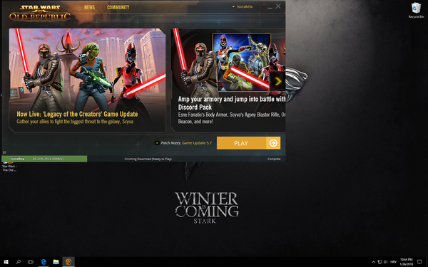 SWTOR: Game stuck in quick play mode at 0.00 % download