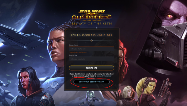 Hello , Im want to return play Swtor but i lost my security key and old phone etc ...