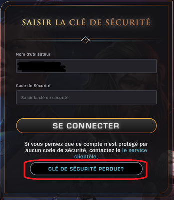 Account lock cle securite application non fonctionnel