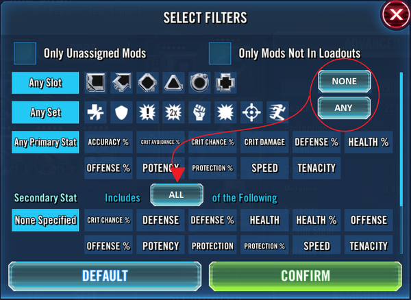 Also, when looking at the character inventory screen, it would be really helpful to know at a glace which toons have full mods and which ones dont. This one may be a stretch and I know that, but real estate is at a premium. In this example the gear locations can double as mod indicators. Six gear slots, six mods: