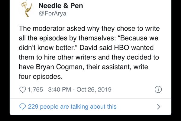 Nah, the writers of Game of Thrones just got their assistants to write half the episodes.