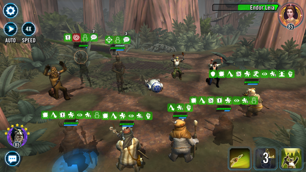 I posted on the character strategy area.- Kill chewie first if possible then kill han once those two are down you've got it won. The endor commando will taunt but logray can dispel it. I cleared it first try with g11 chirpa speed 235, g11 paploo speed 229, g12 lograyspeed 264, g12 elder speed 237, g12 wicket speed 262