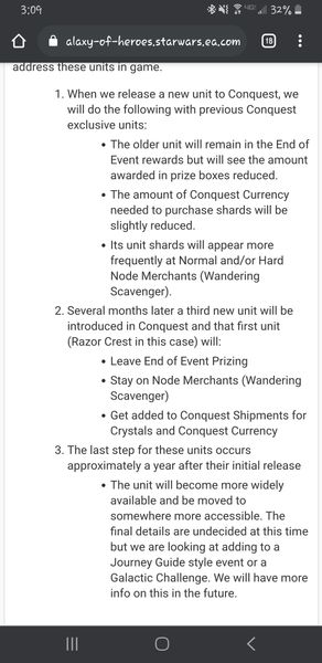Is it mentioned somewhere on the forums? I was under the impression that the Razor Crest was the 1st conquest unit and that every other conquest units were suppose to follow the same path, which is clearly not the case. 400 vs 475 is a huge difference for 5 shards, makes it way harder for players who didn’t already unlocked CAT. Since we didn’t have a conquest pass in the past, it seems like CAT will be the hardest conquest unit to unlock! Weird because she’s an important part of what’s probably the best team in the game.