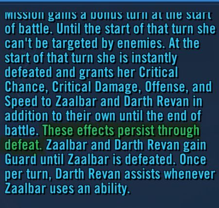 Another thing to wonder about: what if someone attempted a battle with say just Hoda (or C-3PO, etc) vs this team. Does the auto escape occur before the instakill on Mission?