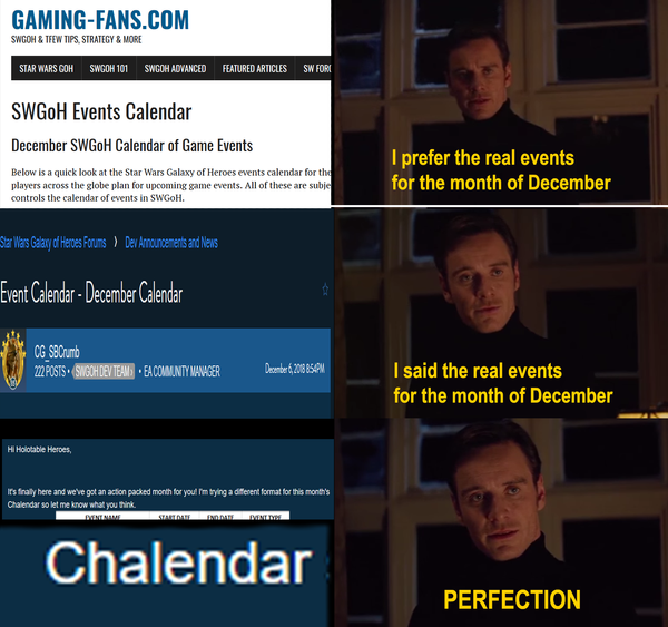 This topic is more of a question to CG Team how i love for the most part.Dear CG i know that with all the kotor new characters you were swarmed and the C3PO puzzel,etc ,but can you please make from now on the chalendar for the next month and post it in advance with at least 1 day from the end of the month so we can make sence of what is to come.Thanks CG and lets make Grievous great again.