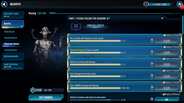 If there is a prerequisite for being able to complete the quest, such as a certain amount of character stars, shards, relic levels et cetera perge perge, I shouldn't be able to attempt the quest at all without meeting said requirements. It's always been this way in SWGOH and every other game I've ever played.