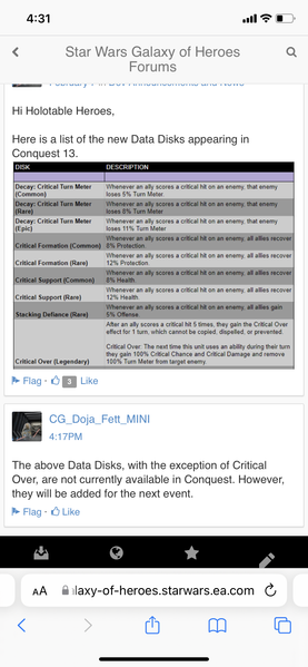 Besides the 14x feats, this is my biggest complaint. All these toons and possible compositions and your examples are exactly what we get and it’s just boring. - Still some bugs and flaws, but the strong consensus in my guild is that this is a big improvement over the past few conquests. More guys are going for the top crate, and more are buying the basic conquests pass. The changes are good for the players and probably also for CG’s bottom line.
