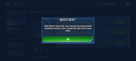 Forgot to finish my dailies earlier in the day, so at 11:55pm I check and go to finish them but instead get this message when I try to claim them. I restarted my game to see if it was a desync is...