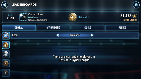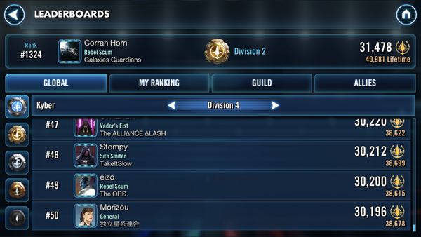 I know that there will be some kyber leaguers from these divisions once this GA phase ends, but it’s a joke that the biggest divisions in the game that are filled with the most loyal, long-term, and financially invested players don’t get to see kyber when there are 50+ players at this level in every other division. Seems like making the game fun for players at every level has gone sideways when this is the result.