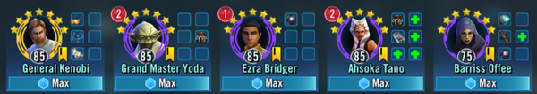 No zetas, omegas maxed (except for barriss heal), GK (L) and Anakin G12, GMY, Ezra G10 and Barris G8. Only took a few tries.- I got smashed. But I would do. My Jedi team are, by design, poor.