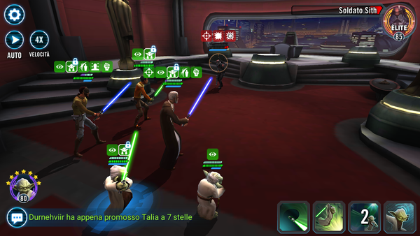 I think there was a bug, their team keept to attack my hoda (who can'r go in furtivity) and he dodged everything. This till i killed nihilus and maul, after maul's death it started normally - I did it again right now, this time they killed only my old ben, you can look the gear here