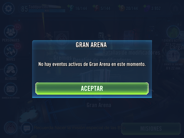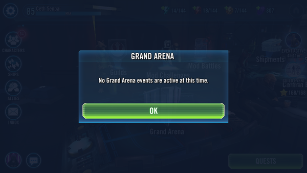 We are actively monitoring for bug and issues with Grand Arena. Please post your ally code and what issue you are experiencing. Thank you for your time!
