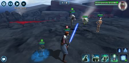 I used JKL lead, GK, Shaak Ti, GMY, and Jolee this time just to see how it would go. I needed Jolee to revive characters who died before I even had a chance to move. And yes I was able to use JKL's Hero's Arise move at the end of each wave to stun the next wave and slow them down. It is possible, but I shouldn't have to deal with AI going 4-5 times before I can even move because that's the only way they know how to make it "tougher".