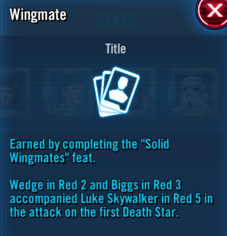 I would like to have a way to receive certain titles that were never offered to me. The Peter Mayhew memorial title. The titles for year one and two players? I pre-registered for this on Play store all those years ago and it is beyond frustrating that I have no title or means of showing this in game. Best I have is 3rd anniversary title.