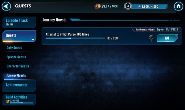 It's a year long quest, and you get 30 purge instantly whenever you run a Reva+GrandInq squad.