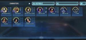 Bastila Jolee and Borrowed Revan are all thats really needed. But you will need to level them up a bit because not all characters are needed for each phase. I think I got their abilities to lvl 4 or 5. They werent well modded either, just random. I auto'd the event except second to last tier.
