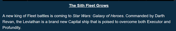 One of the things that they could do for the Leviathans Ult is, rather than just taking control of the enemy capital ship, it should take control, AND switch all faction specific synergies over to Sith and Sith Empire. Example: if you take control of Executor, then it's mass swarm calls all Sith/Sith Empire allies to attack, as opposed to BH allies
